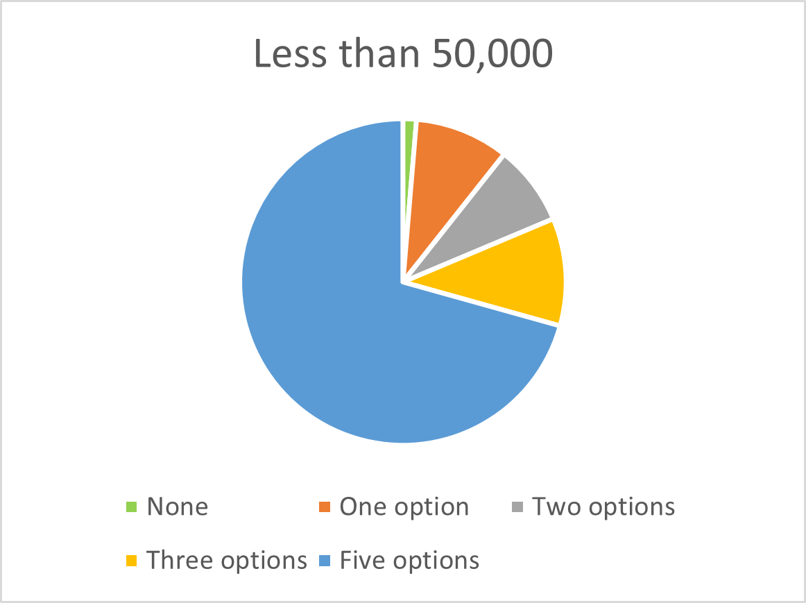 Through the survey we were able to get a sense of the types of finances people utilized during first lockdown period to cover the needs of their whole household. As figure 1 (below) indicates, a majority of the respondents used cash at home and cash at bank as their first and second choices across all income categories. However, in terms of using multiple sources decreases with the increase in income. This is intuitive where individuals belonging to lower income categories (with less than Rs. 50,000 household income, and between Rs. 50,000-100,000) have had to resort to all types of finances available, including pawning and borrowing frequently, while the higher income categories have resorted to pawning jewellery or other methods of borrowing on a very limited scale.